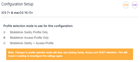 - MobileIron Sentry + Access Profile - Select if Tunnel VPN supports both traffic to Access for authentication to enterprise cloud resources and through Standalone Sentry to on-premise enterprise resources. This option is available for iOS and Android only.