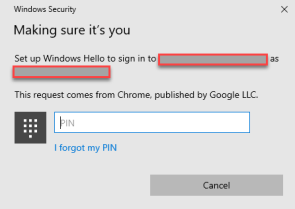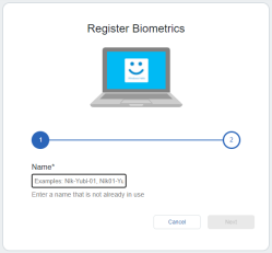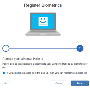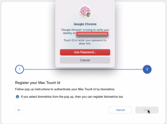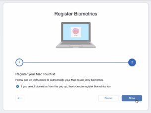 The Register Biometrics window for Windows Hello or MacTouch ID opens based on the device that you are using.