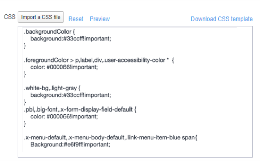 Download: Downloads a copy of the default CSS file to your browser's Download folder for you to keep and modify. Alternately, you can copy and paste the default CSS file into the CSS text window. See