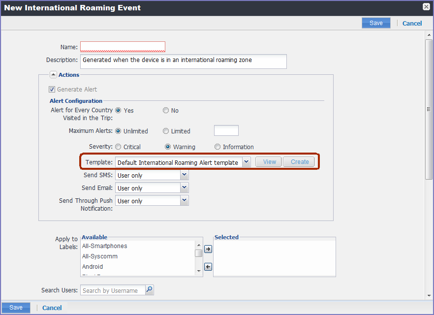 When you create or edit an event, you specify which template to use for resulting alerts. To select a template: