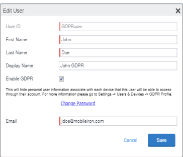 European Union (EU) members have additional data protection rights under the General Data Protection Regulation (GDPR) standard. The MobileIron GDPR profile protects member data from being exposed to integration partners, API developers and administrators.