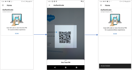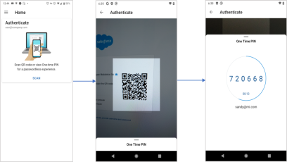 Figure 4. Scanning the QR code - workflow on Anddroid Authenticator Only device