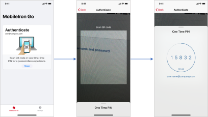 The following illustrates an example of the OTP workflow on an iOS device using MobileIron Go.