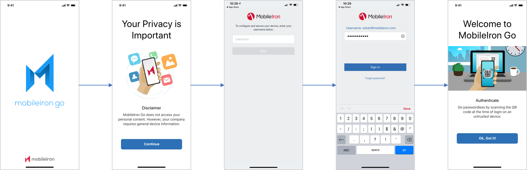 Figure 2. Authenticator Only registration workflow on MobileIron Go for iOS