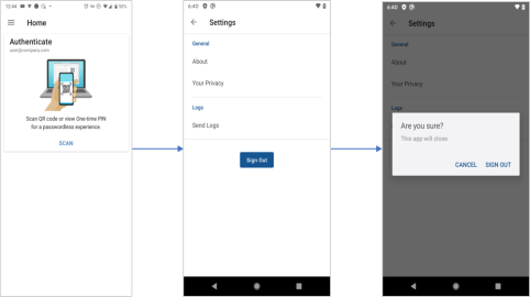 To deactivate Authenticator Only in the UEM client for Android,open the menu and tap Settings > Sign Out.
