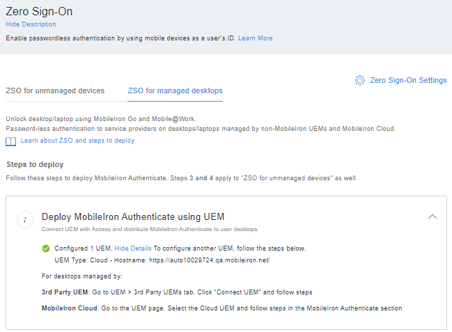 Under Steps for deploy, expand Deploy Authenticate using UEM.