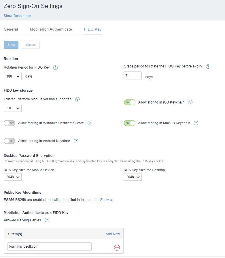 Rotation Period for FIDO Key: Specify the duration required to generate a new FIDO key.