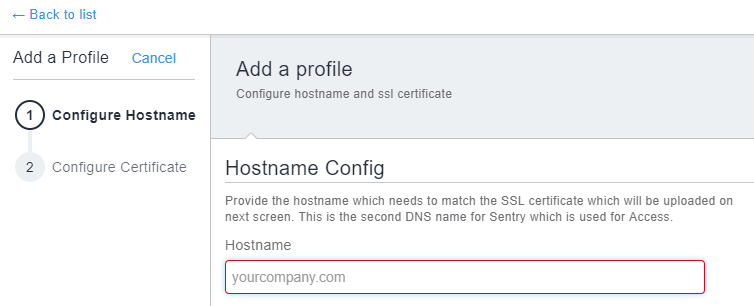 If you selected Access + Standalone Sentry, the Add Profile screen appears. Use the Profile page to create a profile for Access and set up Access + Standalone Sentry.