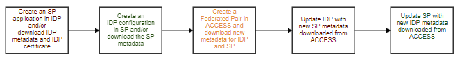 Configuring a federated pair in MobileIron Access requires 5 steps: