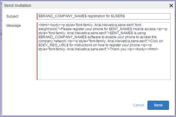 This registration method results in user notification via email. The email contains instructions for registering devices via the user portal. See Self-service User Portal for information on what the user is expected to do to complete the registration process.