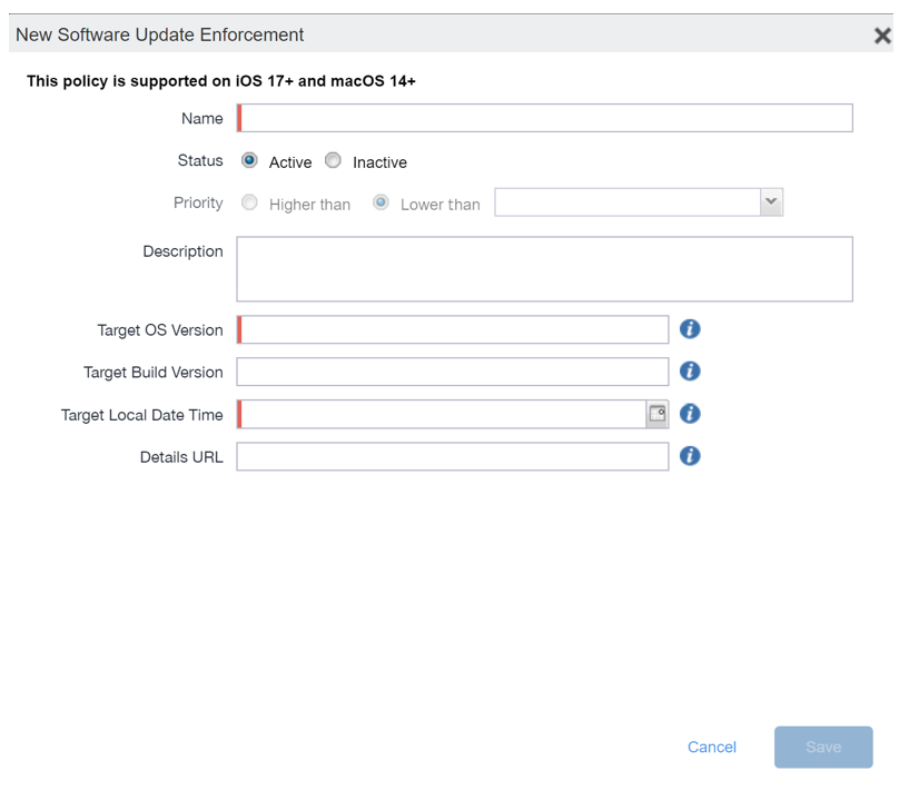 Navigate to Apple > iOS/macOS > Software Update Enforcement. The New Software Update Enforcement window opens.