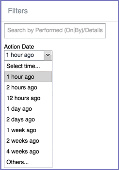 7. (Optional) To limit the time frame of the actions, use the Action Date box (see Setting event time criteria in audit logs)