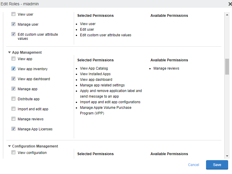 You can now view Installed Apps tab for custom space on Android and iOS devices. The Apps> Installed Apps tab can be viewed by enabling 'View app inventory' from Admin > Actions > Edit Roles > App Management.