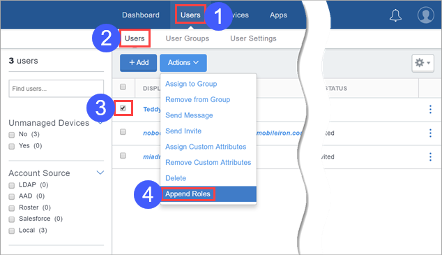 Log in to Ivanti Neurons for MDM and then click Users. |