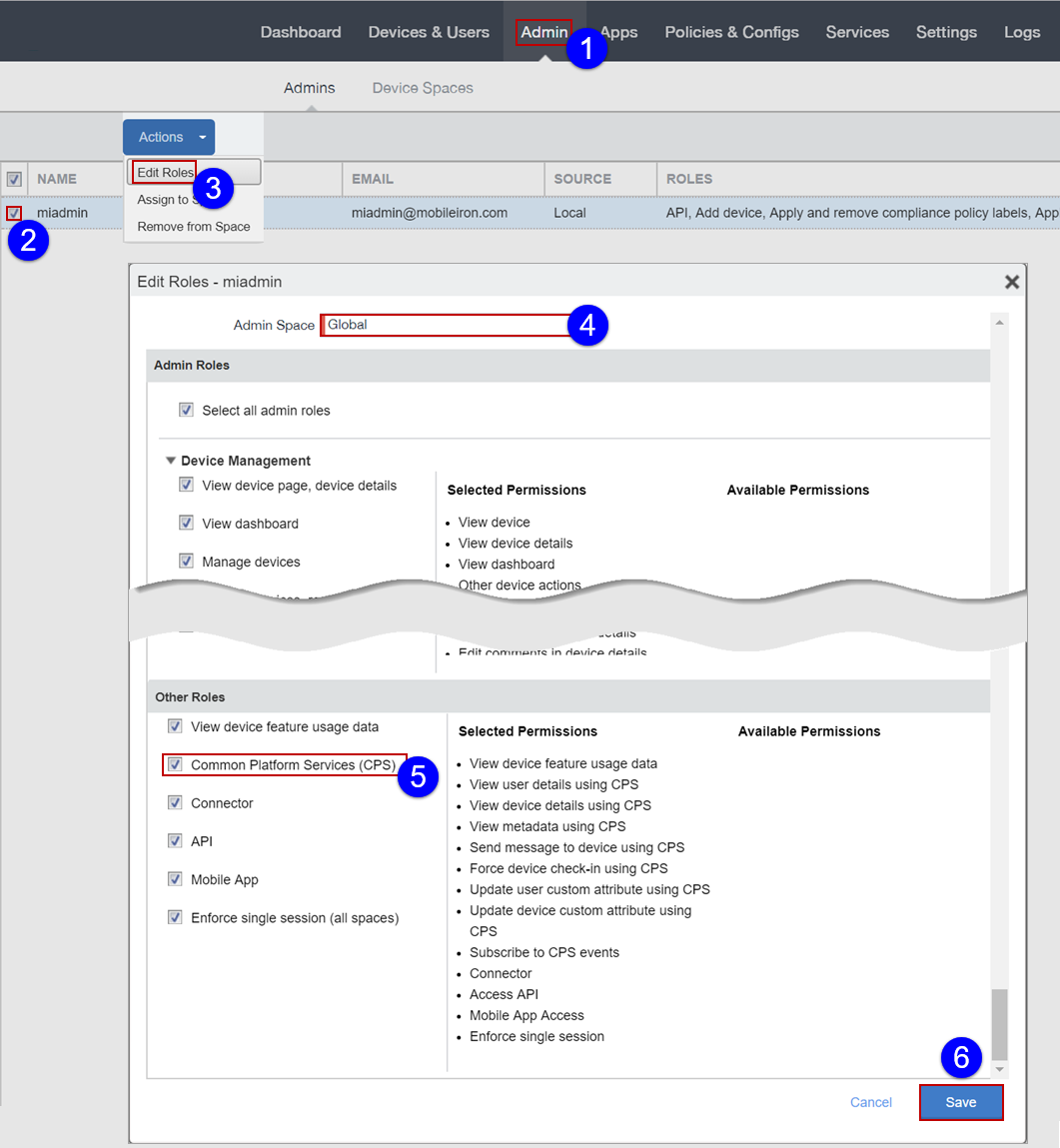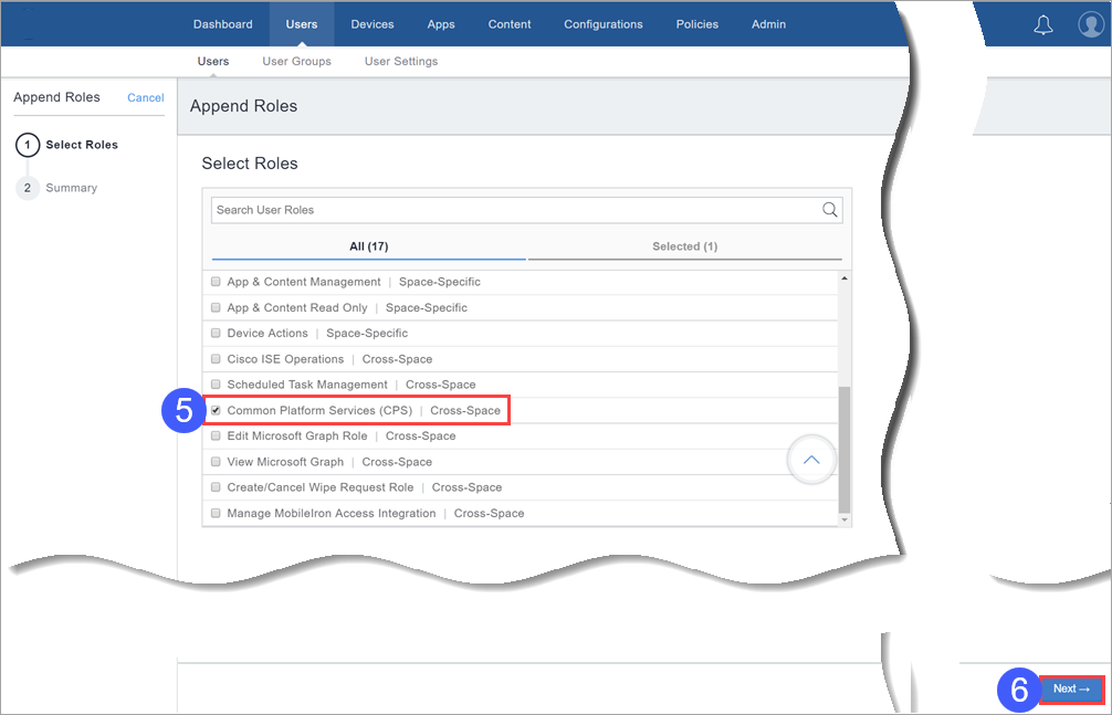 Assigning the CPS role to a Ivanti Neurons for MDM user