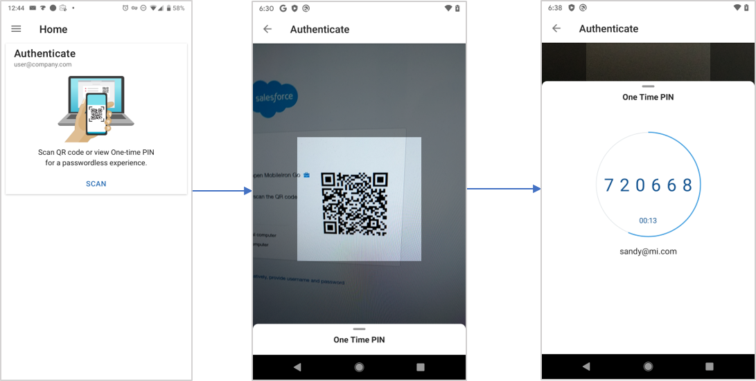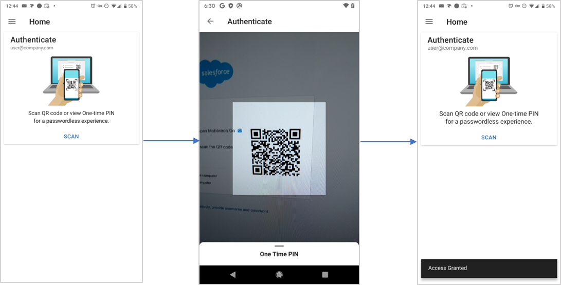 Figure 2. Scanning the QR code - workflow on Anddroid Authenticator Only device