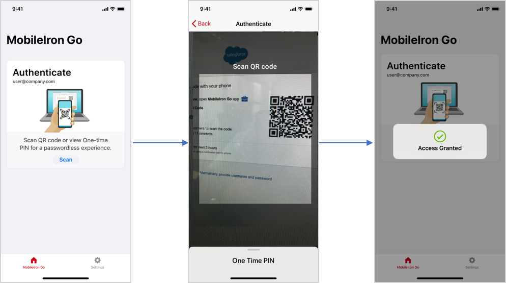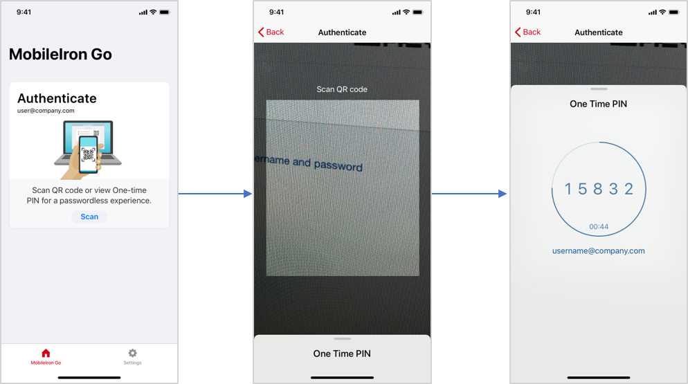 Figure 3. Scanning the QR code - workflow on iOS Authenticator Only device