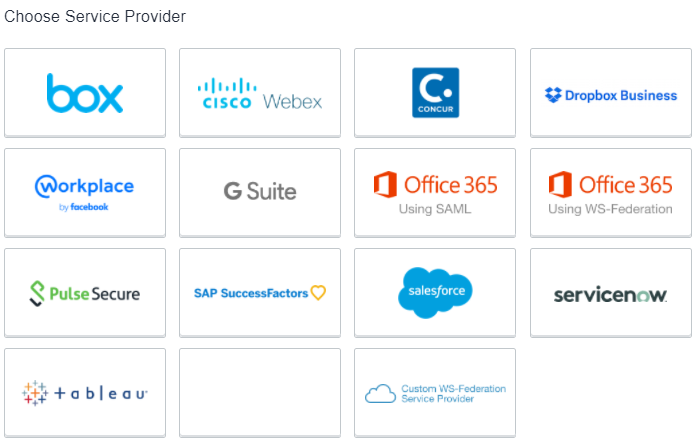 Office 365 is configured using either WS-Federation or SAML federation authentication protocols. Select one of the following service provider options in the Choose Service Provider page to configure Office 365 settings: