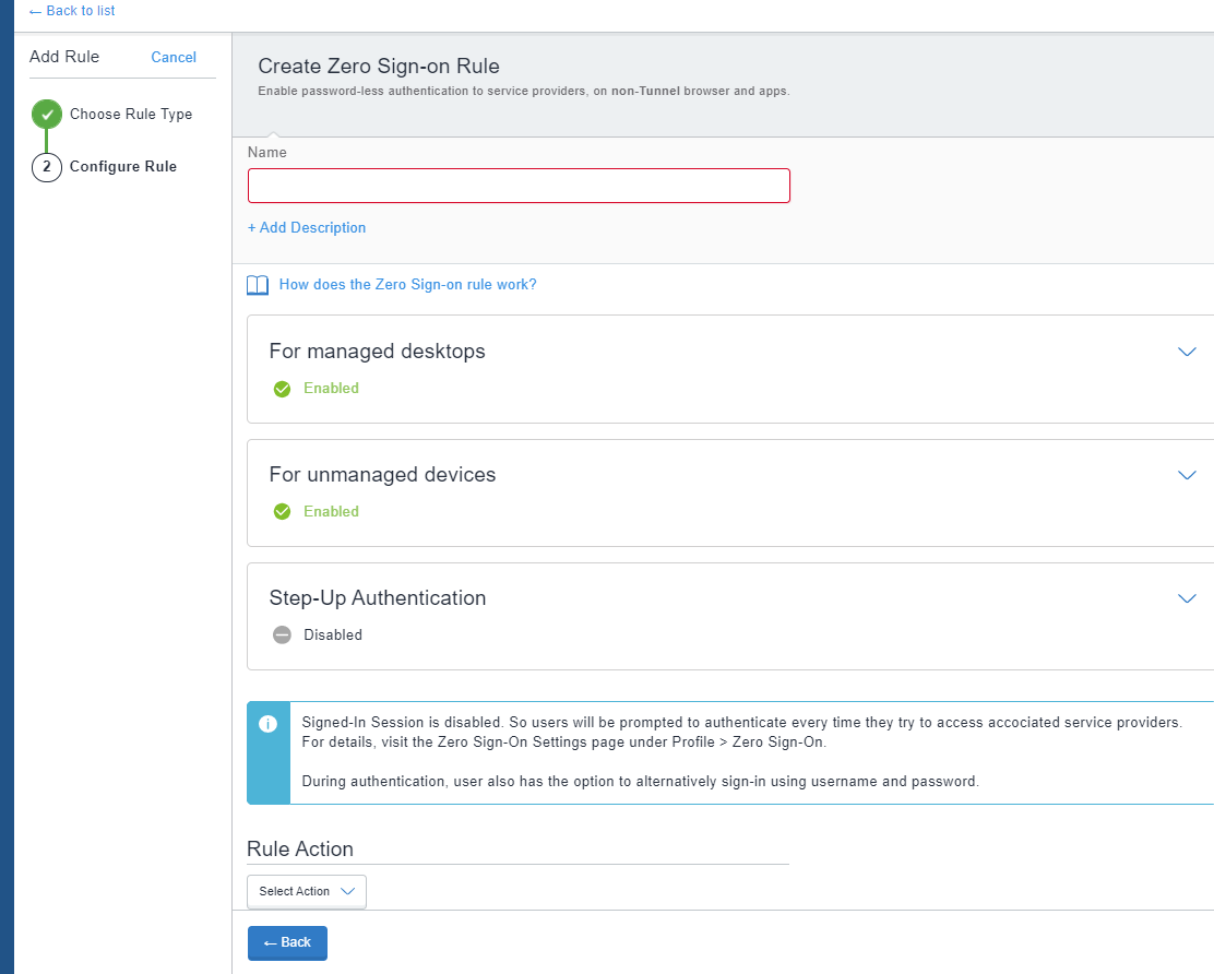 Click +Add Rule > Zero Sign-on Rule to add the conditional rule for Zero Sign-on.