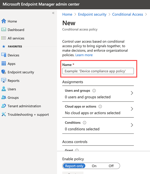 条件付きアクセスポリシーの名前を入力します。