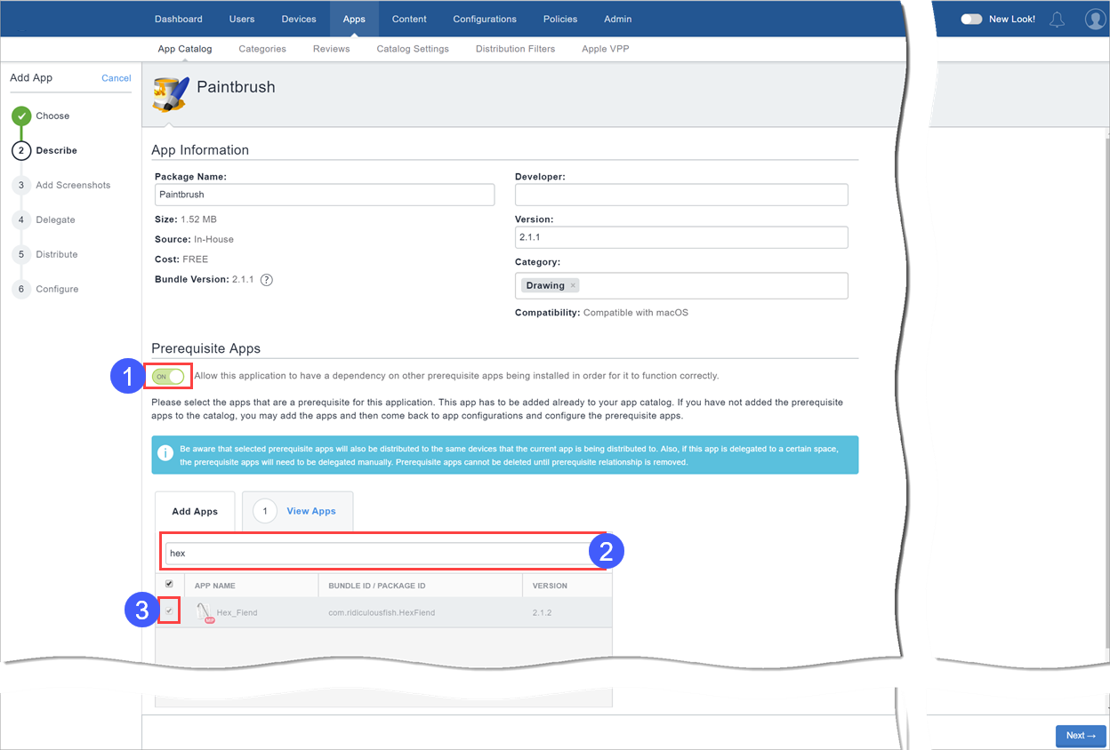 1. [アプリカタログ] > [アプリ] を開き、配布モード オプションを1つ選択します。