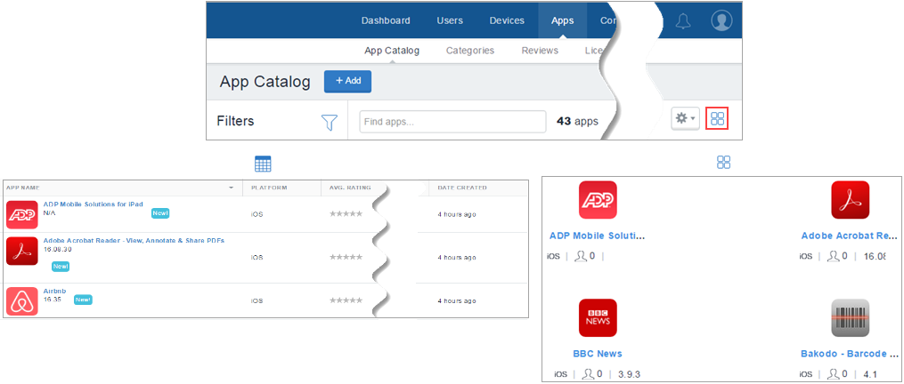 [アプリカタログ] 画面の右端にあるリストまたはグリッドのアイコンをクリックします。