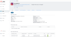 カタログ内のどのアプリについても、アプリカタログからアプリ詳細に進むことができます。 アプリ詳細のページには、ディスプレイバージョン(例:1.5.0)、バンドルバージョン(例:1.5.0.42)、最小OSバージョン(例:Android 5.0)など、アプリの詳細情報が表示されます。