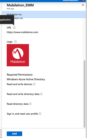 - Selecione o aplicativo MobileIron_UEM na galeria de aplicativos e clique em Adicionar.