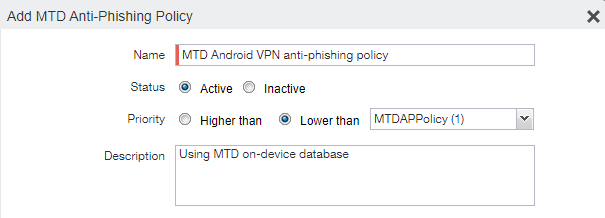 Click Add New > MTD Anti-Phishing. The Add MTD Anti-Phishing Policy page opens.