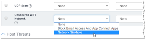 Ivanti, Inc recommends selecting the Network Sinkhole action ONLY for network-related threats. Use of Network Sinkhole action for device and application threats can result in disabling network connectivity to the device without the ability to restore network connectivity.