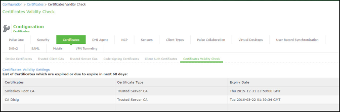 1.Click on Configuration-> Certificates -> Certificates Validity Check.