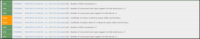 7.To check if the certificate expiry warning is logged, click on log monitoring. The certificate expiry warning logs are displayed.