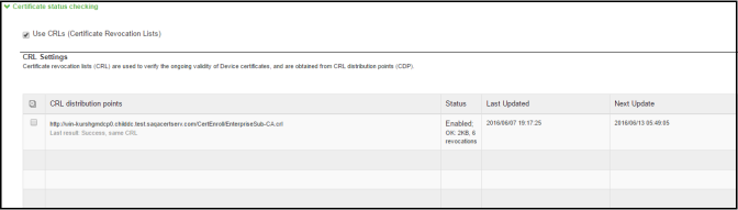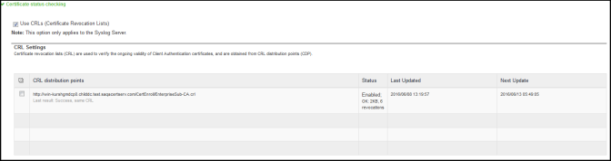 6.Once the CRL is successfully downloaded for Client Auth Certificate, it is listed in the CRL distribution points. See Figure 198.