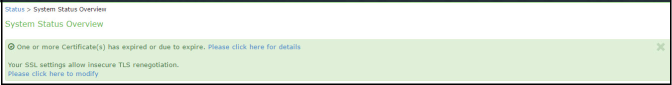 6.When an administrator logs in, a warning sign is displayed, if there are any certificates that expire within the configured number of days.