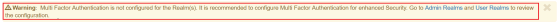 •Multi Factor Authentication: Multi Factor Authentication can be configured for the Realm(s). It is recommended to configure Multi Factor Authentication for enhanced Security. View Admin Realms and User Realms to review the configuration, see Authentication Realms.