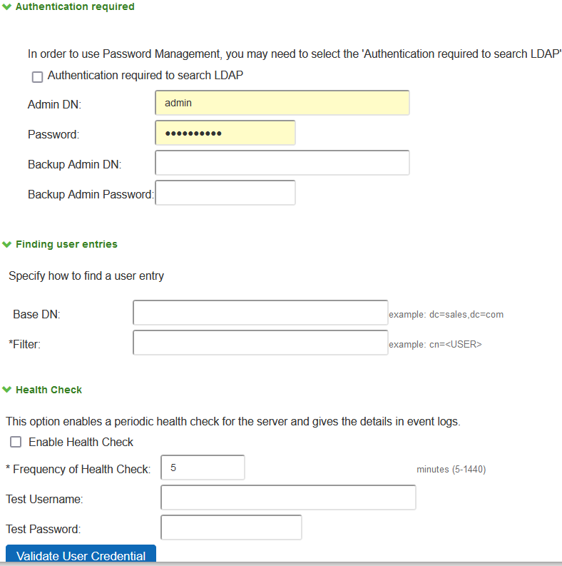 •External (standards-based) - You can integrate standards-based LDAP and RADIUS servers with the access management framework. In addition to using the backend server for authentication, you can use LDAP group and RADIUS attribute information in role-mapping rules.