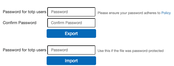 4.Use the Export and Import buttons located at the bottom of the user accounts table to export and import TOTP users data.