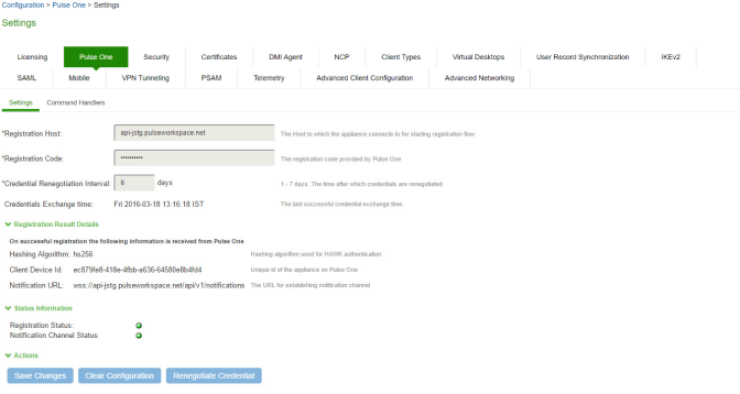 Pulse One Settings (System > Configuration > Pulse One > Settings)