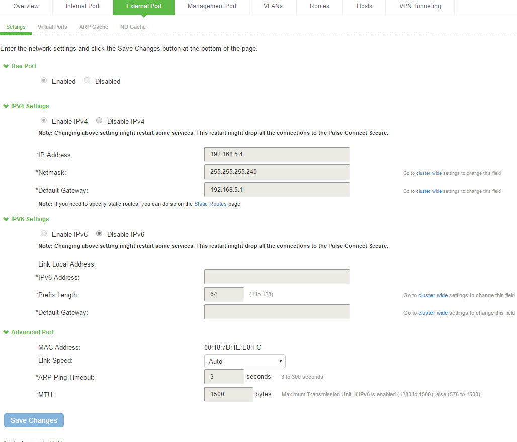 1.In the admin GUI, choose System > Network > External Port > Settings.