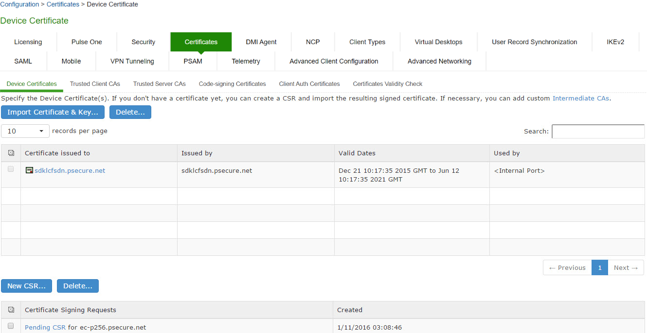 1.In the admin console, choose System > Configuration > Certificates > Device Certificates.
