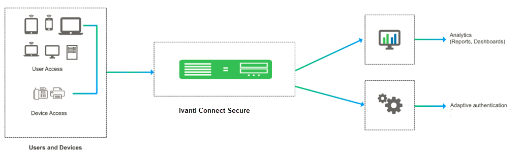 1.Administrator enables the behavior analytics and configures Ivanti Connect Secure for Adaptive Authentication