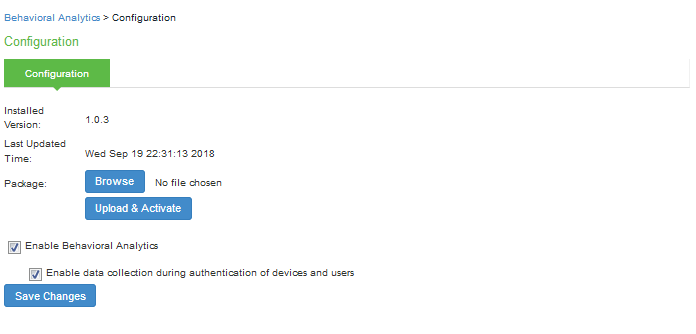 The Behavioral Analytics package is available by default for detecting the anomalies. If you plan to upgrade to the latest package, it can be downloaded from Support Site.