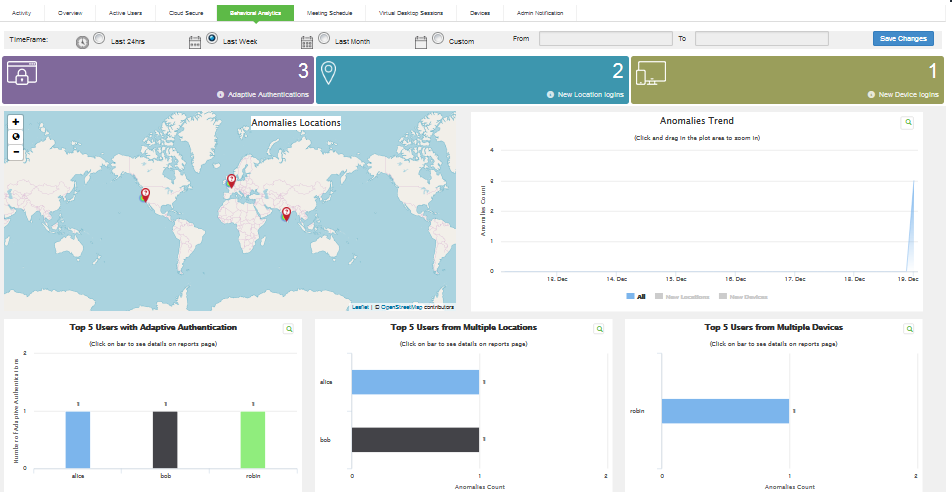 Behavioral Analytics feature analyzes user's action along with other context data to derive conclusions about any anomalous activities. It provides information/visibility based on real time user or device context thus helping in advanced attack detection and helps in proactive policy-based enforcement.