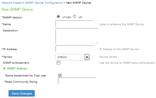 If you wish to use SNMP enforcement, configure Location Group to add an SNMP device. For Location Group configuration instructions, refer IPS Administration Guide.