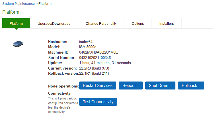 - Select Maintenance > System > Platform to display the system maintenance platform page.