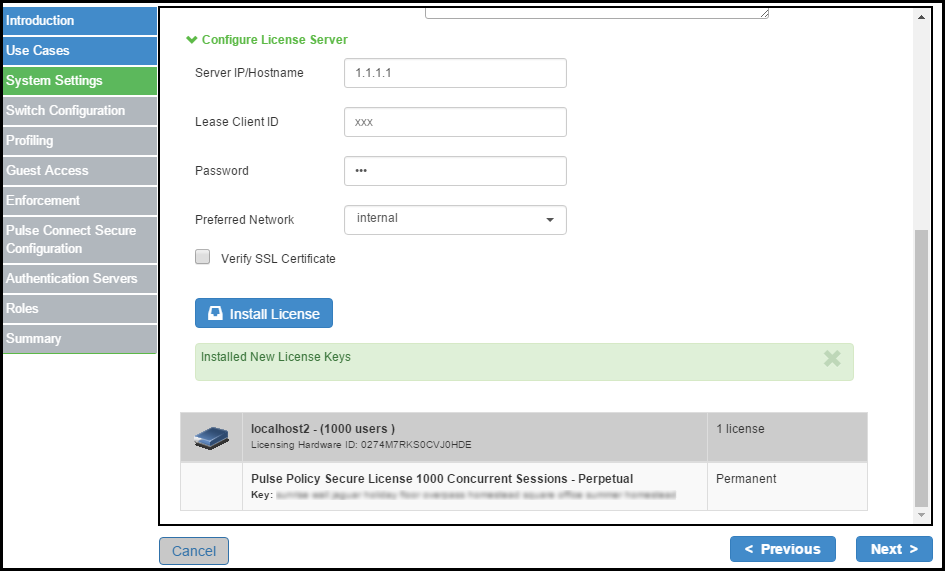 - Select the network to communicate with the license server from the Preferred Network menu. The available options are internal (default), external, and management.