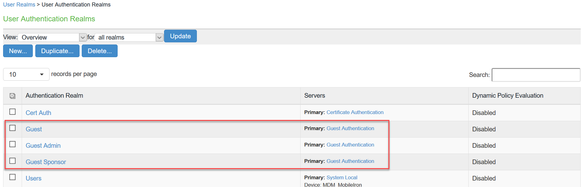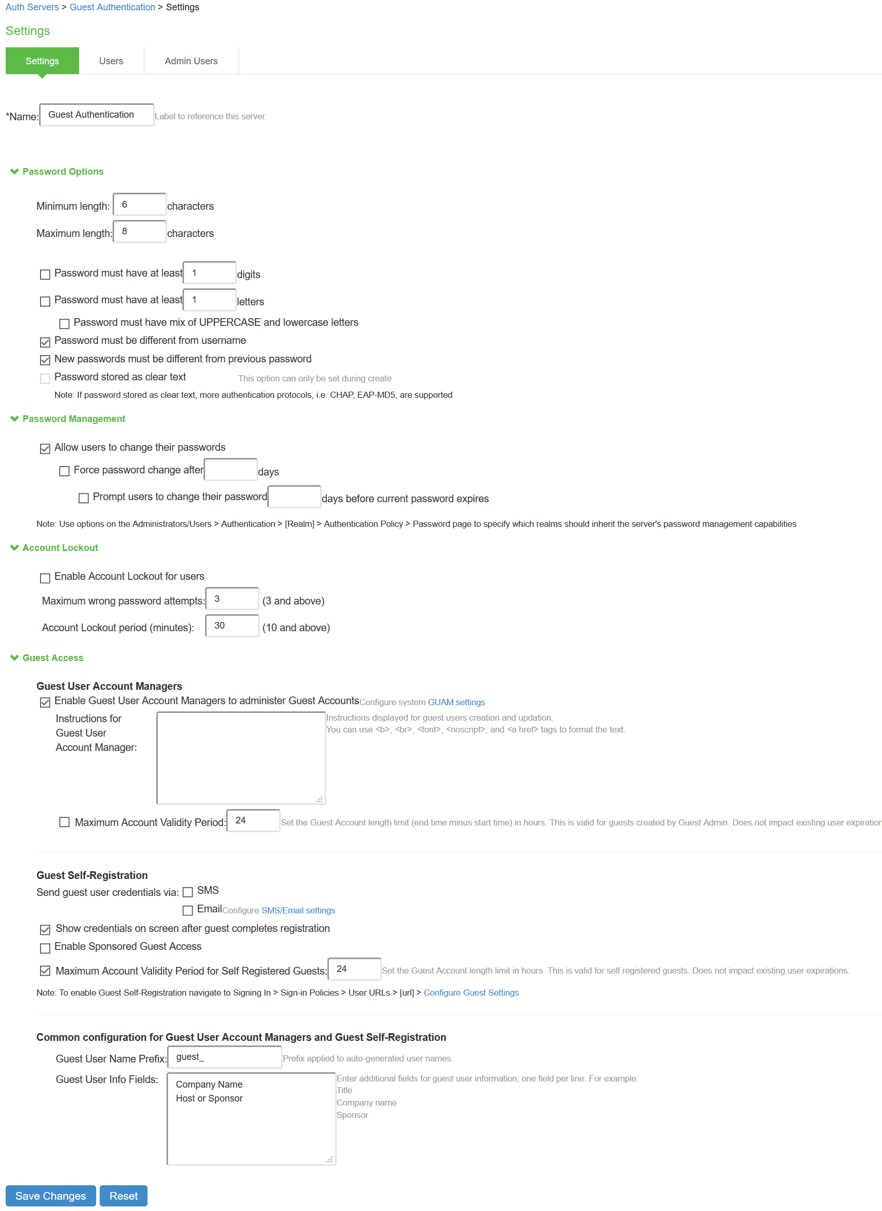 - Use the Default Guest Authentication Server under Authentication > Auth.Servers.