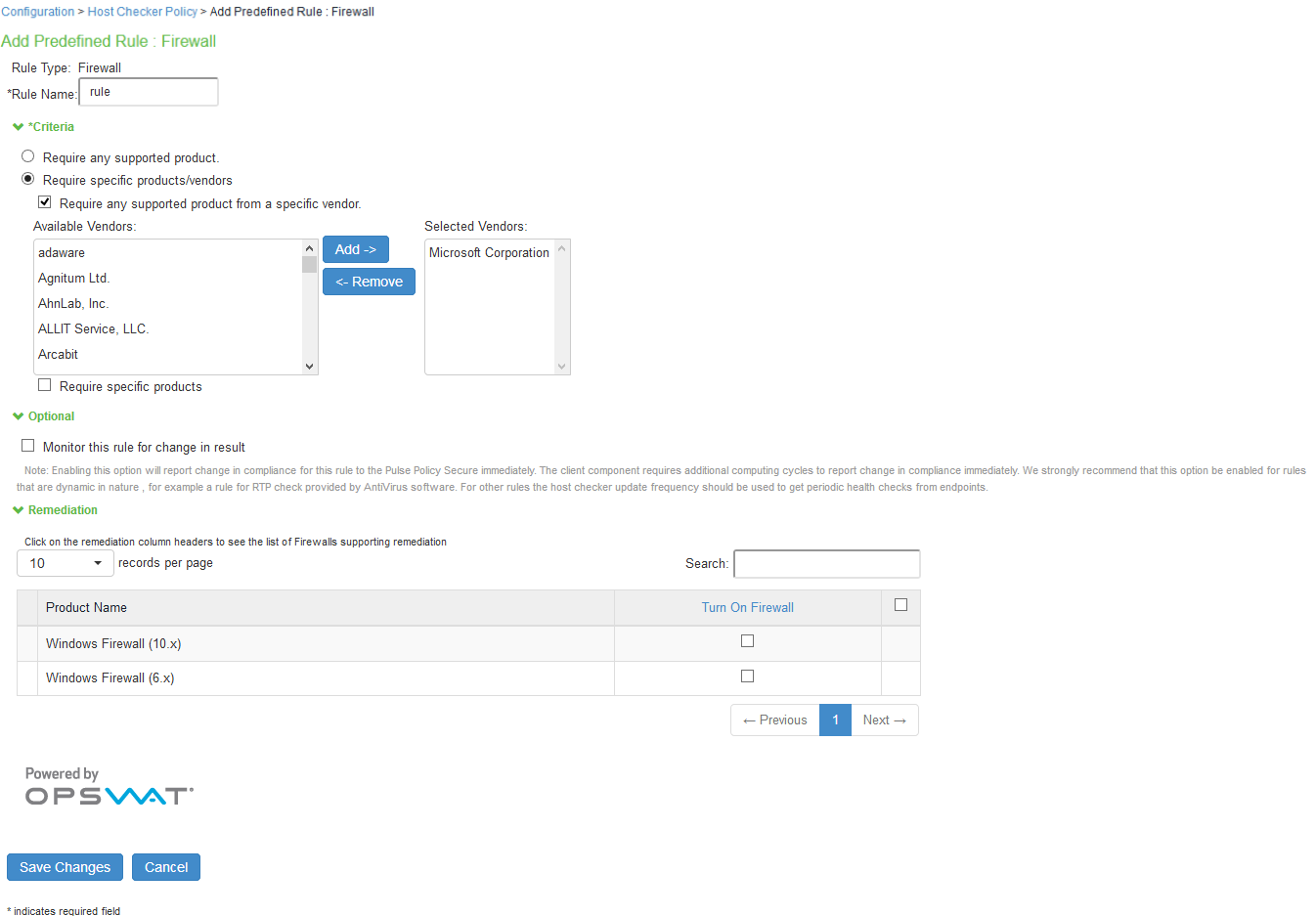 - Enter the rule name and specify the criteria for compliance and click Save Changes.