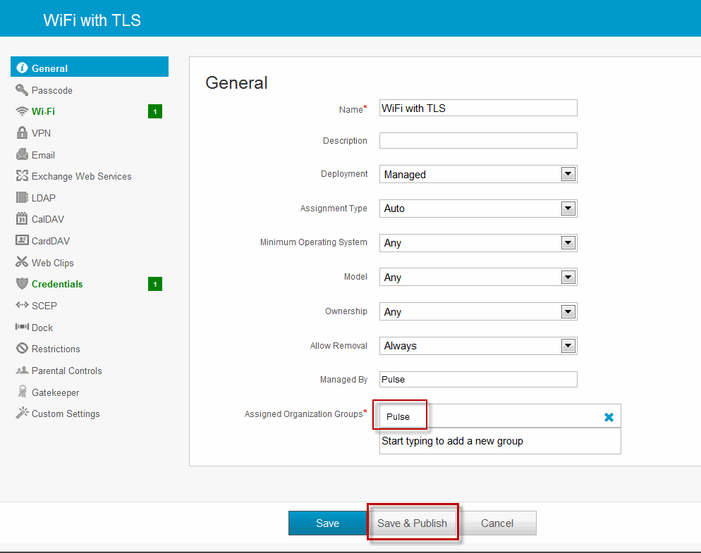 - Save and deploy the profile to devices registered with your organization.