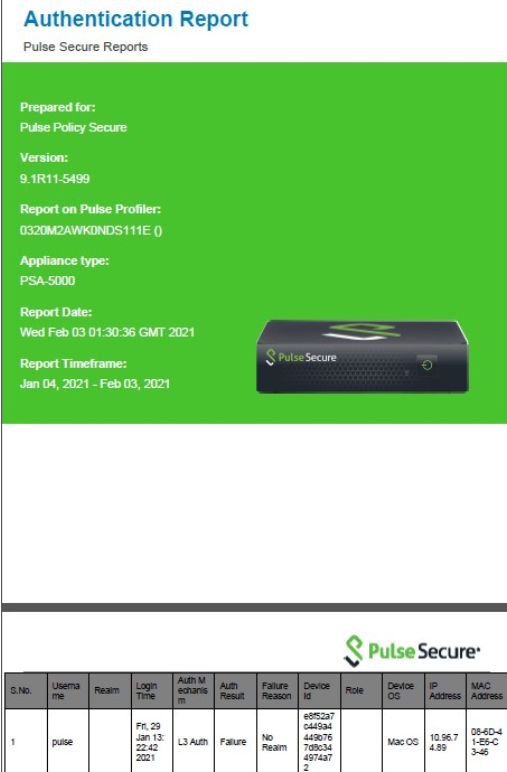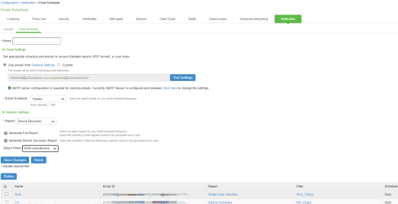 The scheduled email reports will be sent based on Ivanti Policy Secure server time.
